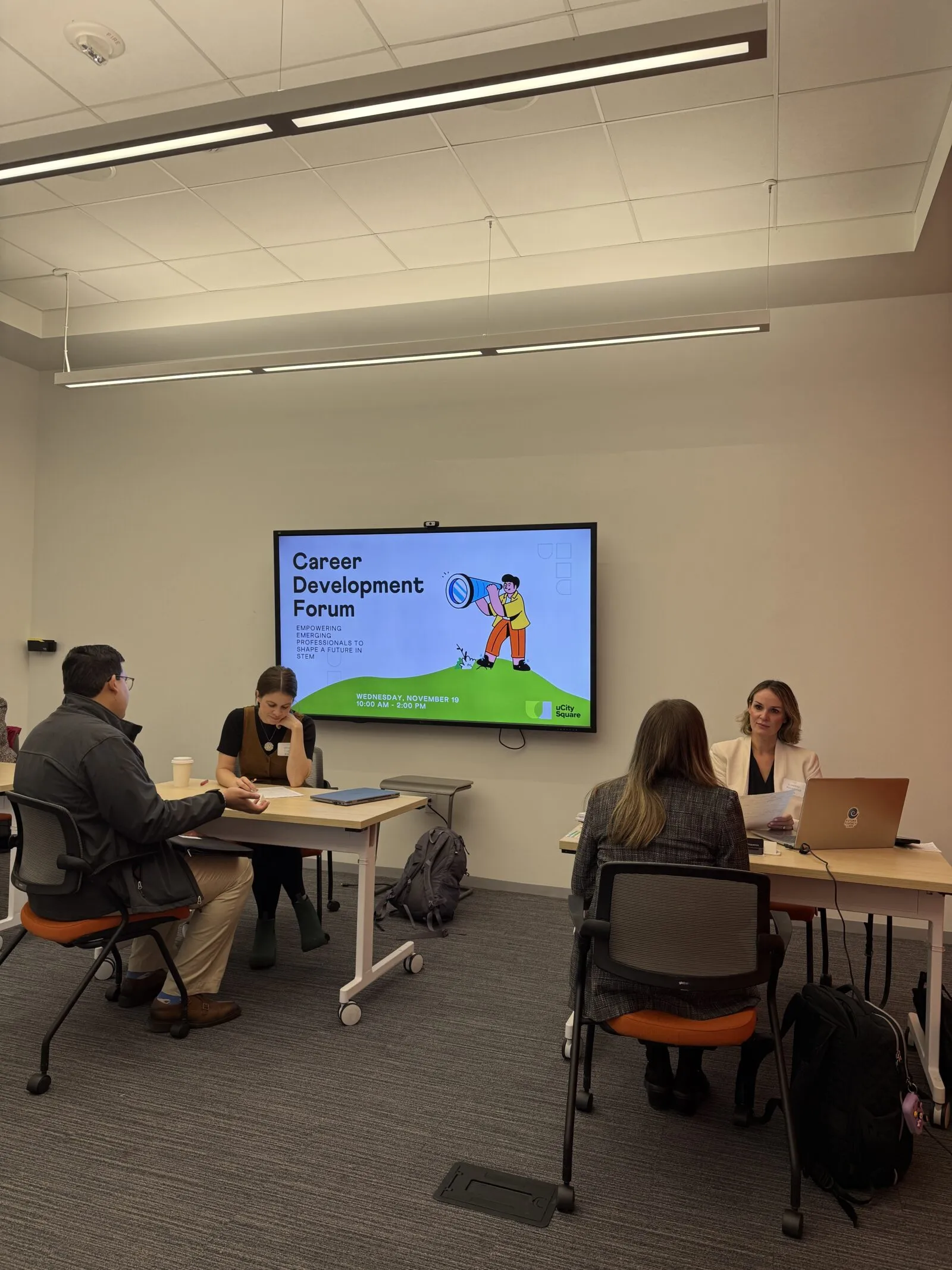Alongside these sessions, attendees were supported by workshop leaders and career coaches from Penn Career Services, Drexel Career Services, Artly Working, local employers in STEM, and professional headshots by Hannah Yoon, making the forum both practical and high-impact.